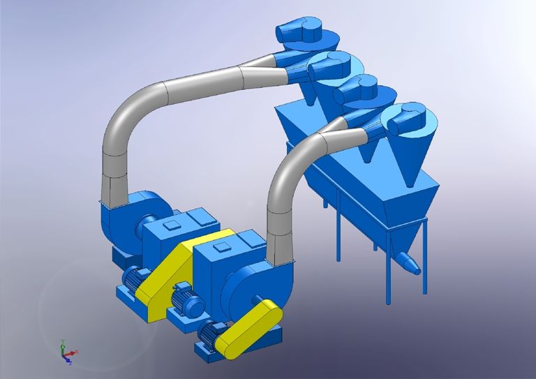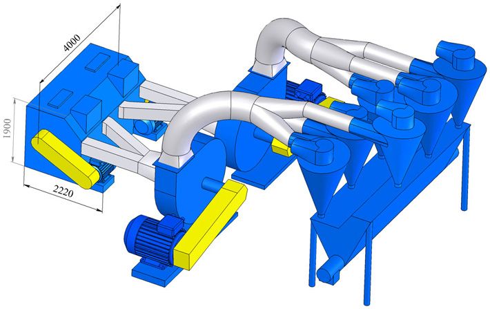 Следует отметить, что для очень тонкой сепарации (получение эковаты из макулатуры) необходим радиальный вынос продукта, а для получения массы для брикетирования или изготовления пеллет достаточна тангенциальная сепарация.